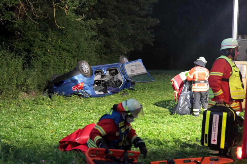 TIEFENBRONN, 02.09.2021 (rsr) – Ein schwerer Verkehrsunfall ereignete sich am Donnerstagabend auf der Würmtalstraße bei Tiefenbronn-Mühlhausen. Nach ersten Informationen war ein Golffahrer alleinbeteiligt auf der Würmtalstraße L572 von Mühlhausen kommend in Richtung Wasserwerk unterwegs. In einer scharfen Kurve kam er aus bislang unbekannten Gründen von der Fahrbahn ab. Das Fahrzeug schanzte in der Folge über eine Leitplanke eine Böschung hinab. Der Golf, in dem zwei Personen saßen, kam schließlich auf dem Dach zum Liegen.